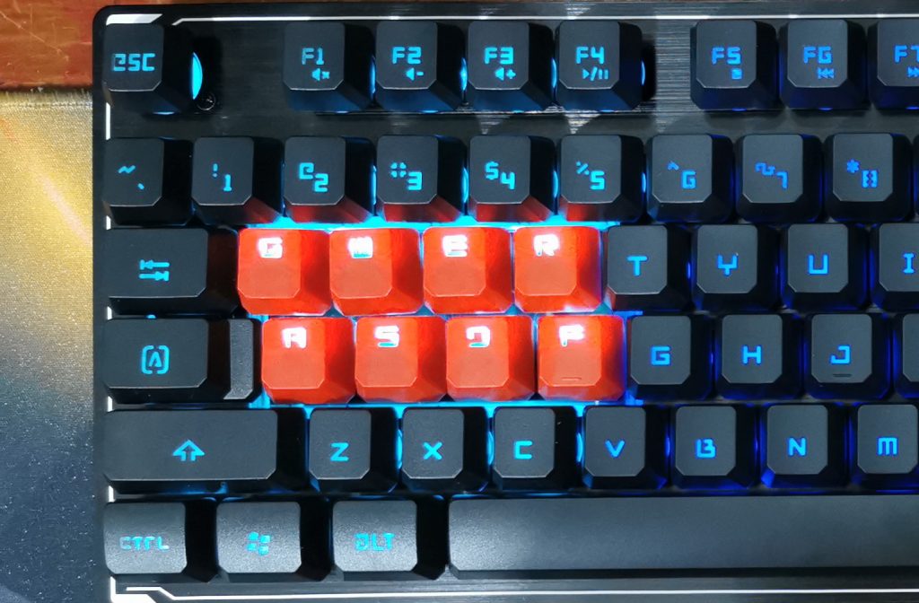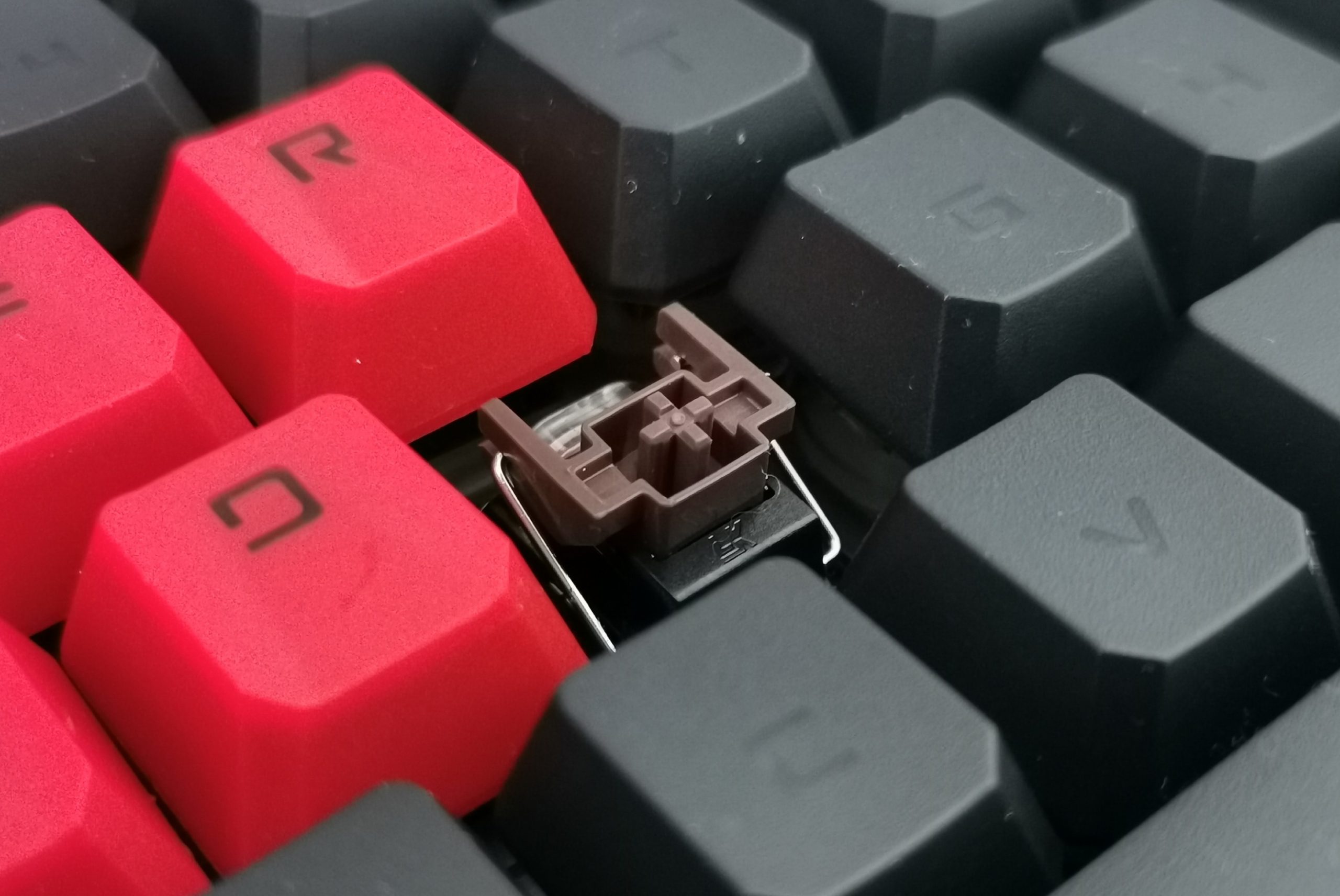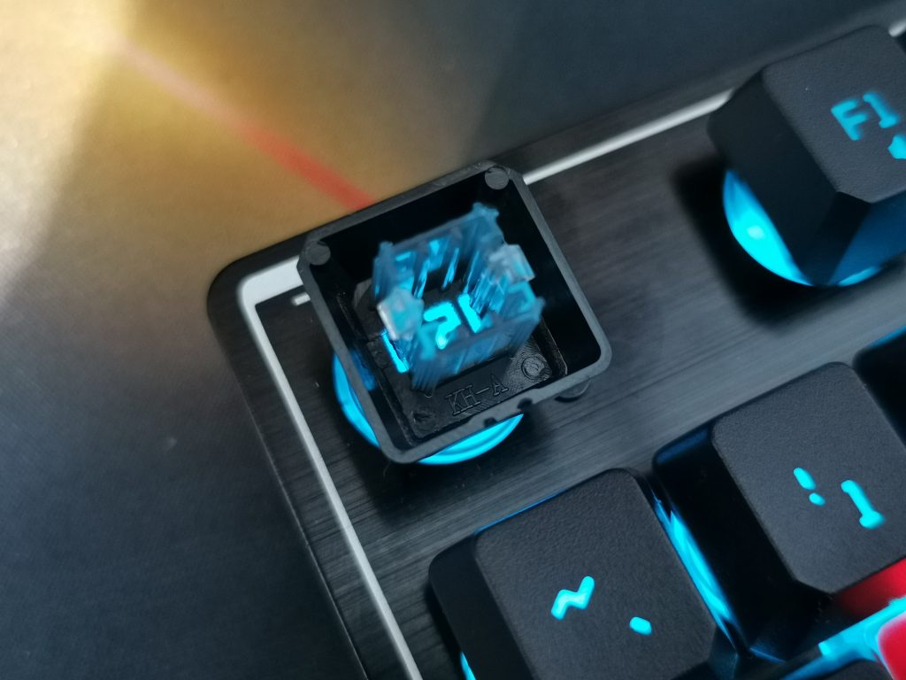 Bagian transparan dan bagian hitam setiap keycaps tampaknya di molding dua kali sehingga tiap huruf di keycaps dapat tetap transparan dan lebih tahan lama.